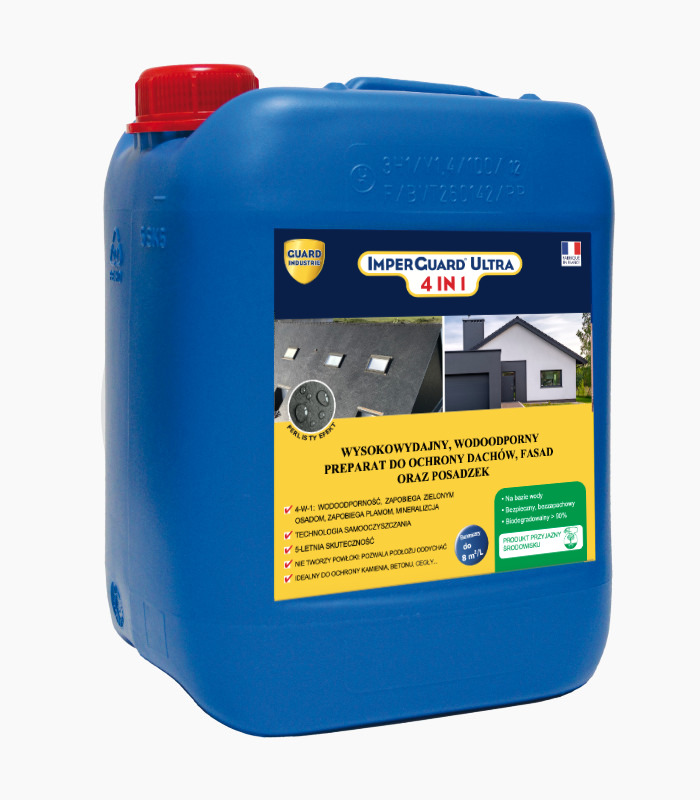 ImperGuard Ultra 4 in 1 eignet sich für den Einsatz auf Außenflächen wie Naturstein, Beton, Putz, Ziegel, Terrakotta, Schiefer, Zement und Pflastersteinen, ideal für Fassaden, Dächer, Einfahrten, Terrassen und Gehwege.